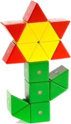 Zeven vormen in vijf kleuren stimuleren de fantasie, van eenvoudige mozaïeken tot geavanceerde ruimtelijke modellen – de bouwset groeit mee met de vaardigheden van het kind.
