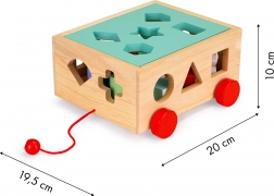 Het speelgoed heeft speciale openingen aan de zijkanten om de juiste vorm aan de opening te koppelen. Het kind maakt kennis met verschillende vormen en leert basiskleuren herkennen.
