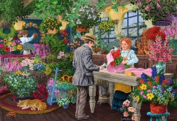 Puzzel aan de hand van de kleurrijke afbeelding van de bloemisterij of probeer de achterzijde met patroon en leg uitsluitend op vorm. Dubbel zoveel plezier in één verpakking.