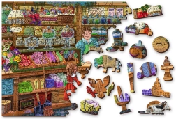 Ontdek de charme van een nostalgisch patisseriemotief met de houten puzzel WOODEN CITY Zoete Avonturen 2-in-1. Dankzij de precieze lasersnede zijn de randen glad en splintervrij en voelt het puzzelen prettig aan. De puzzel is dubbelzijdig – aan de voorzijde leg je een kleurrijke afbeelding, aan de achterzijde een herhalend patroon dat ideaal is om op vorm te puzzelen.