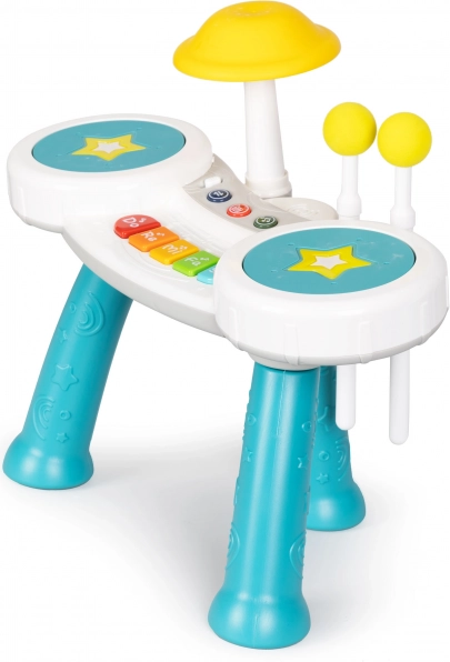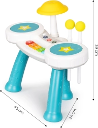 Dit product combineert een piano en drums om kinderen het ultieme muzikale plezier te bieden.