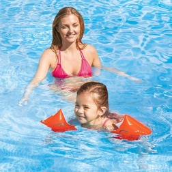 Veilige en comfortabele opblaasbare INTEX-armbanden voor kleine zwemmers vanaf 3 jaar. Dankzij de dubbelkamersconstructie, het duurzame PVC en de helder oranje kleur bieden ze uitstekende zichtbaarheid en stabiele drijfkracht tijdens het leren zwemmen.