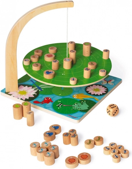 Wie kan de dieren het langst op de waterlelie houden? Waterlelie is een gezelschapsspel om vaardigheden en fijne motoriek te verbeteren. Om in de vijver te overleven, moet je handig en strategisch te werk gaan! Plaats de dierfiguren op de waterlelie zonder dat deze omvalt. Het doel van het spel is dat de dieren niet van de waterlelie vallen. De set bevat een houten basisplaat met een hangende waterlelie, 42 houten speelstukken met dieren en 1 houten dobbelsteen. Het feit dat de plaat niet helemaal vlak is, heeft geen invloed op de speelbaarheid van het product. Kleine tip: hoe voorzichtiger je het dierfiguurtje plaatst, hoe minder je de waterlelie in beweging brengt. Het spel ontwikkelt: - handigheid en fijne motoriek - strategisch denken - concentratie Geschikt voor kinderen vanaf 6 jaar.