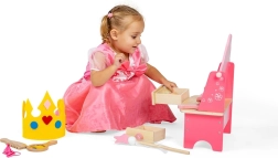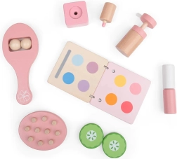 De set bevat een rijke collectie houten accessoires voor realistisch spel: een compact palet, “komkommerschijfjes”, een massage­roller, een haarborstel, lippenstift, parfum en nagellak. Tijdens het spelen ontwikkelen kinderen sociale vaardigheden, verbeeldingskracht en oog-handcoördinatie.