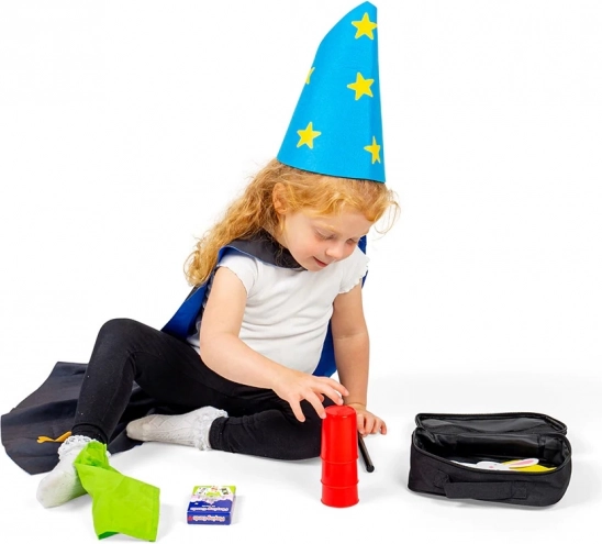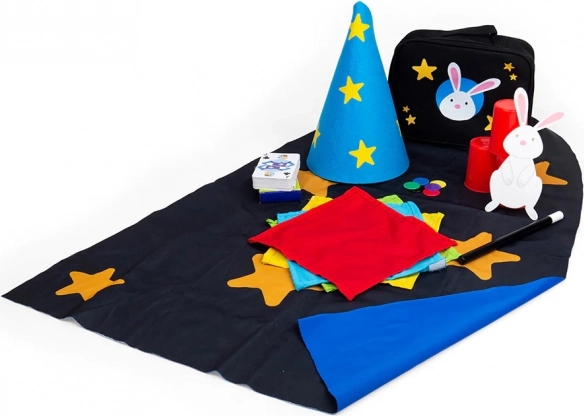 De set bevat klassieke hulpmiddelen voor geliefde trucs – bekers en balletjes, kaarttrucs en het “tevoorschijn toveren” van een konijntje uit de tas. Dankzij de praktische tas hebben jonge goochelaars alles overzichtelijk bij de hand en kunnen ze optreden thuis, bij opa en oma of op een kinderfeestje.