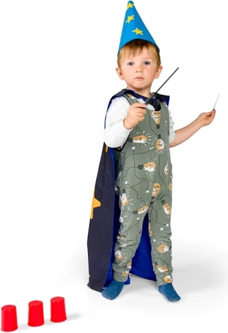 Een stijlvolle cape met sterren en een comfortabele hoed versterken het zelfvertrouwen van jonge goochelaars en maken van elk optreden een magische show.