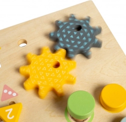 Twee houten tandwielen stimuleren het ontdekken van mechanismen, logisch denken en nieuwsgierigheid tijdens het spel.
