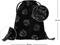 De koordsluiting met stevige koorden zorgt voor snel sluiten en maakt het mogelijk de zak op de rug te dragen als een lichte rugzak. Het stijlvolle design met het wapen van Zweinstein zal alle fans van de toverwereld aanspreken.