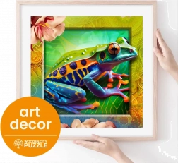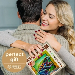 Houten puzzel Kleurrijk Kikkertje van het merk WOODEN CITY biedt plezier met uniek gevormde stukjes. Laser-gesneden details vormen betoverende dierfiguren en zonder plastic verpakkingen is deze puzzel milieuvriendelijk.
