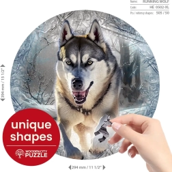 Unieke houten puzzel van het merk Wooden City met als thema de Rennende Wolf, biedt een leuke uitdaging met unieke gevormde stukjes die los kunnen staan als figuurtjes.