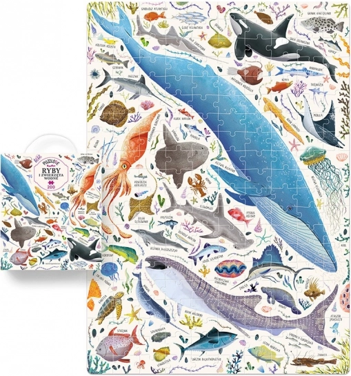 Puzzel Puzzlove CzuCzu – vissen en zeedieren, 200 stukjes. Prachtige illustraties, groot formaat 48 × 68 cm, ideaal voor kinderen en volwassenen en als decoratie.
