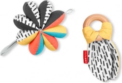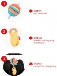Ons 3-in-1 DISCOVEROSITY-speelgoed voor kinderen biedt drie verschillende speelwijzen dankzij de mogelijkheid om de afzonderlijke elementen apart te gebruiken of samen te voegen. De zachte rammelaar heeft aan de ene kant een contrasterend patroon en aan de andere kant felle kleuren, terwijl de houten ring is gemaakt van duurzame materialen. Dit doordachte ontwerp is ideaal voor zowel grijpen als bijten.