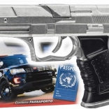 Dit politie knalkurkpistool met robuuste metalen behuizing biedt kinderen een realistische speelervaring. Dankzij het 8-schots magazijn voor knalkurkjes is het klaar voor dynamische actie en langdurig speelplezier. Ideaal voor politie-rollenspellen, carnaval of themakostuums.