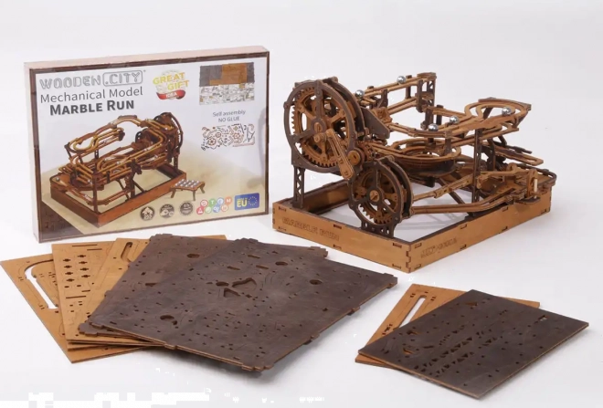 Deze 3D houten puzzel siert niet alleen het interieur, maar biedt ook urenlang plezier en uitdaging. Gemaakt van ecologisch berkenmultiplex met hoge dichtheid, vereist dit model nadenken en vaardigheid tijdens het bouwen. Het ontwerp simuleert een functioneel mechanisme waarbij metalen knikkers door uitgebreide banen lopen.