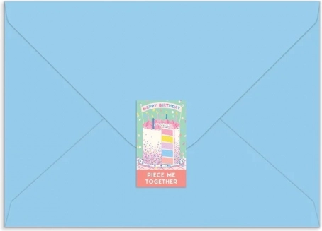 Verras je dierbaren met een combinatie van een kaartje en puzzel. Deze ansichtkaart puzzel toont een mooie taart, op de achterkant kun je een persoonlijke boodschap schrijven, opdelen in stukjes, in de bijgevoegde envelop stoppen en als cadeau versturen.