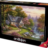 Beleef het plezier van puzzelen met onze puzzel Cottage bij Stonybrook Falls met 2000 stukjes, geleverd met een praktische standaard voor comfortabel puzzelen.