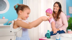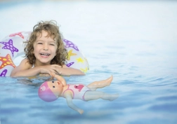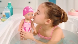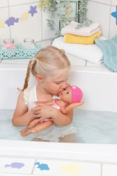 Het lichte, waterbestendige lichaam van de pop is ideaal voor bad en peuterbadje – je kind kijkt toe hoe de pop zwemt en op het water drijft.