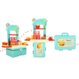 De hele set is compact opgeborgen in een lichte koffer, wat het makkelijk maakt om mee te nemen op vakantie of bij vrienden op bezoek en zorgt ervoor dat uw kind zich nooit verveelt. De keuken stimuleert fantasie en interesse in koken, wat kan leiden tot de ontwikkeling van nieuwe interesses.