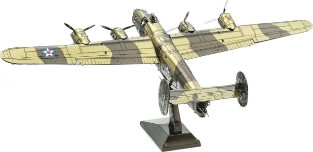 Dit metalen 3D-model van de B-24 Liberator biedt een authentieke bouwervaring zonder lijm. De onderdelen zijn nauwkeurig laser-uitsneden, passen perfect in elkaar en vormen na assemblage een realistische miniatuur van de legendarische bommenwerper met vier propellers en een karakteristieke romp.