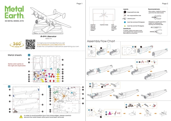 Ontdek het verfijnd uitgevoerde metalen model van het vliegtuig B-24 Liberator van METAL EARTH, dat een spannende uitdaging, gedetailleerde lasergravure en een indrukwekkend eindresultaat biedt. Uit stalen plaatjes bouw je een realistische miniatuur van een historisch bommenwerpervliegtuig, ideaal als stijlvolle decoratie voor thuis, kantoor en school. Geschikt voor geduldige bouwers vanaf 14 jaar.