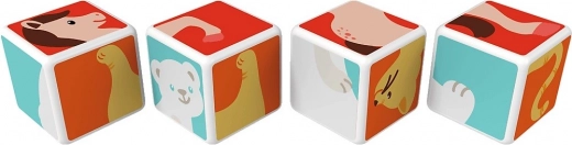 Vier magnetische blokken verbinden aan alle kanten en laten kinderen eenvoudig complete dierafbeeldingen én eenvoudige 3D-vormen samenstellen.