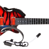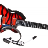 Deze elektrische kindergitaar is een perfecte keuze voor kleine rockers. Hij maakt zowel het afspelen van een kant-en-klare rocktrack mogelijk als eigen spel – bij aanraking van de metalen snaren geeft de gitaar geluid. De meegeleverde headset met koptelefoon en microfoon sluit je direct op de gitaar aan, zodat het kind tegelijk kan zingen en spelen.