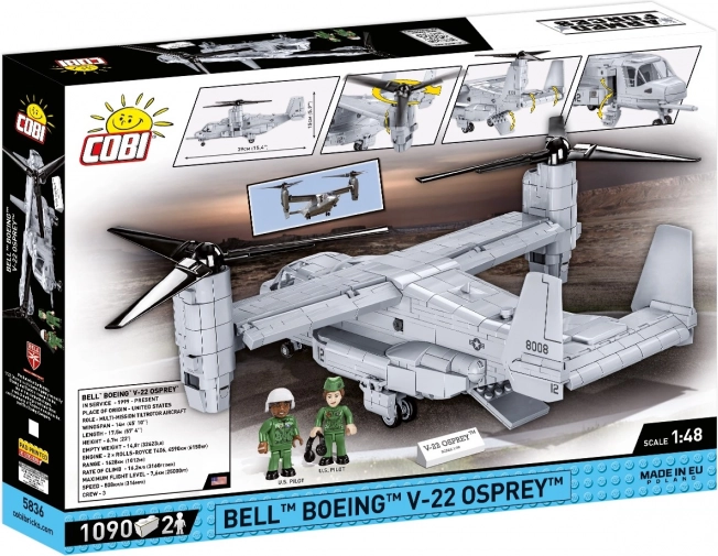 Dit modelvliegtuig Bell-Boeing V-22 Osprey is een uitzonderlijk speelgoed voor liefhebbers van militaire technologie en luchtvaartmodellen. Het bevat 1090 stenen waarmee je een gedetailleerde en realistische kopie van deze futuristische multifunctionele machine kunt maken. Het roterende aandrijfsysteem maakt draaibare plaatsing van de motor gondels mogelijk, wat optionele verticale stijging en daaropvolgende overgang naar horizontale vlucht biedt.