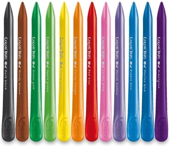 De MAPED Color'Peps PlastiClean kleurkrijtjes zijn ontworpen voor comfortabel en schoon tekenen. De driehoekige vorm zorgt voor een zekere grip en controle over de lijn, terwijl de dubbele uiteinden het mogelijk maken zowel details te tekenen als grotere vlakken snel in te kleuren. Dankzij de speciale samenstelling laten ze geen sporen achter op de handen en zijn ze gemakkelijk te slijpen.