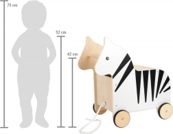 Deze stijlvolle, verrijdbare speelgoedbox in zebra-design combineert functionele opbergruimte met speelse mobiliteit. Kinderen duwen hem eenvoudig aan het handvat van de zebrahoofd of trekken hem aan het koord, terwijl de stille, gerubberde wielen de vloer beschermen en voor soepele beweging zorgen. De afneembare deksel maakt snel opruimen van bovenaf mogelijk en de geïntegreerde beknellingsbeveiliging beschermt kleine vingertjes.