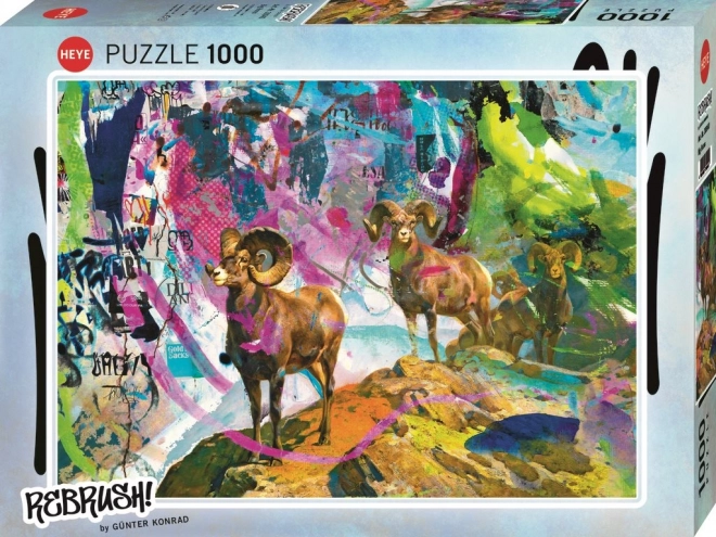 Puzzle HEYE Rebrush! Grote hoorns, 1000 stukjes. Kwalitatieve afwerking, motief om in te lijsten, afmeting na voltooiing ca. 70 × 50 cm. Heerlijk ontspannend en leuk.