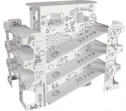 De professionele, heldere zwarte opdruk is ideaal om in te kleuren met potloden, stiften, markers en verf. Het karton absorbeert vocht goed, verkreukelt niet en bloedt niet door. Open ruimtes, hellingen en plankjes stimuleren creativiteit, parkeerspel en de ontwikkeling van de fantasie.