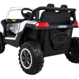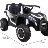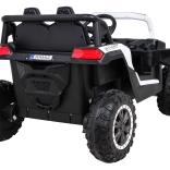 De Buggy UTV 2000M is een krachtige accu-aangedreven kinderauto, ontworpen voor plezier buiten en op de binnenplaats. Dankzij vier motoren en 12 V voeding levert hij betrouwbare tractie, een schokvrije, soepele start en stabiliteit, zelfs op ongelijk terrein. De grote EVA-schuimbanden dempen trillingen uitstekend en de achterdempers vergroten het rijcomfort.