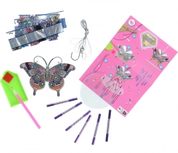 Het proces van het maken met diamantschilderen is eenvoudig. De windgong is voorzien van een transparante folie die het kleverige oppervlak beschermt. Giet de stenen van de gewenste kleur in het schaaltje, neem was op de pen en plak de stenen geleidelijk op de ondergrond volgens het voorbeeld.