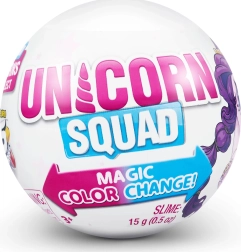 Inhoud van de verpakking: een eenhoornfiguur, outfits, schoentjes, accessoires, slijm, stickers en een herbruikbare opbergcapsule.