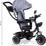 De driewieler van ECOTOYS zorgt voor comfort dankzij de zachte rugleuning en veiligheidsriemen. De afneembare kap beschermt tegen zon en regen.