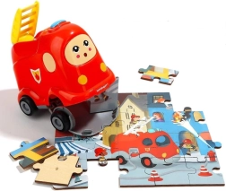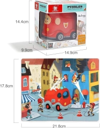 Ontdek een leuke en educatieve speelset die een houten puzzel met het thema brandweerauto combineert met een hoogwaardig plastic autootje met rollende wieltjes. Elk puzzelstukje is aan de achterkant genummerd, zodat kinderen makkelijker vooruitkomen en spelenderwijs cijfers, logica en geduld oefenen.