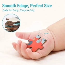 De stukjes zijn aan de achterkant genummerd voor eenvoudige oriëntatie. Ze ondersteunen de fijne motoriek, geduld en de ontwikkeling van wiskundig en logisch denken.