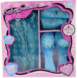 Deze betoverende set in het blauw helpt kinderen eenvoudig de look van een echte prinses te creëren. Dankzij de combinatie van rokje, schoentjes en handtasje is hij direct klaar voor gebruik en stimuleert hij fantasie en creatief verkleden.