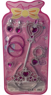 Deze betoverende accessoireset verandert elk kind in een prinses in een handomdraai. Zilverkleurige accessoires met roze en paarse hartvormige steentjes stimuleren creatief spel en rollenspel en geven elke outfit een feestelijke uitstraling.