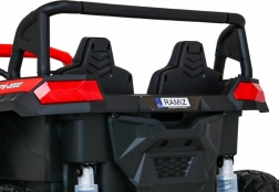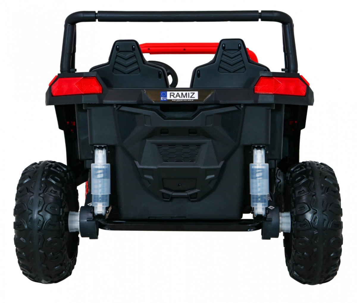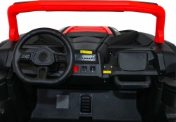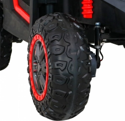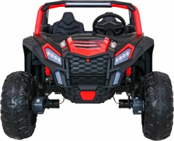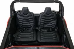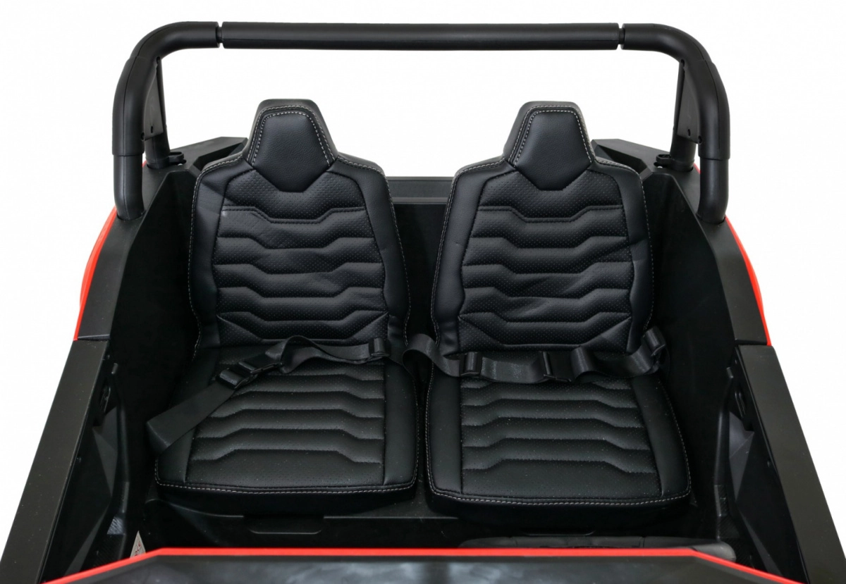 De offroad-buggy voor twee kleine bestuurders combineert hoog vermogen, comfort en veiligheid. Vier 200 W motoren zorgen voor zekere grip op alle wielen, de soepele start beschermt kinderen tegen schokken en dubbele achterdempers verhogen het comfort op oneffenheden. Grote EVA schuimbanden 35×15 cm zijn stil en dempen goed, terwijl LED-lichten voor en achter de zichtbaarheid verbeteren.
