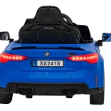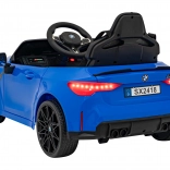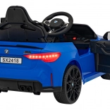 Stijlvolle elektrische kinderauto BMW M4 in blauwe kleur biedt een realistische rit met twee motoren van 2×35 W, een 12V/7Ah accu, te openen deuren en LED-verlichting. Dankzij de soepele start, EVA-schuimbanden en een 2,4 GHz afstandsbediening met veiligheidsknop STOP is de rit comfortabel en veilig. Het audiopaneel met Bluetooth, USB, MP3 en AUX zorgt voor favoriete muziek voor kleine chauffeurs.