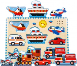 Educatief speelgoed voor kinderen vanaf 2 jaar, dat beeld en geluid combineert om de nieuwsgierigheid en het leerproces te stimuleren. Elk puzzelstuk toont niet alleen een voertuig, maar speelt ook het karakteristieke geluid af! De puzzels hebben handgrepen voor eenvoudige hantering.