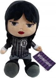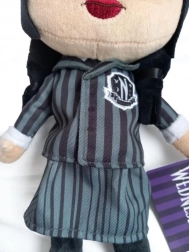 Duik in de wereld van de populaire serie met onze pluchen pop Wednesday Addams van 32 cm groot. Deze pop is gemaakt van zacht pluchen materiaal en valt op door de details van iconische kostuums.