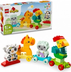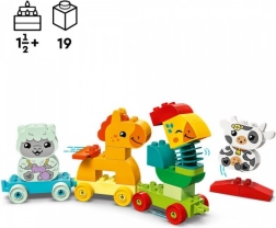 De LEGO DUPLO dieren-trein is een hit voor alle kleine dieren- en voertuigfans. Kinderen bouwen een haan, paard, schaap en koe, zetten ze in de bijpassend gekleurde wagonnetjes en gaan op een avontuurlijke rit. Dankzij de grote stenen is de set eenvoudig te bouwen en stimuleert hij leren door te spelen.
