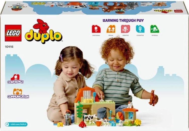 Ontdek de magie van de boerderij met LEGO DUPLO Dierenverzorging op de boerderij – het ideale speelgoed voor kinderen vanaf 2 jaar. Bevat acht schattige dierenfiguren en kleurrijke bouwstenen die rollenspel, empathie en fijne motoriek stimuleren. Stal, kippenhok, hooischuur en volop realistische accessoires inspireren tot eindeloze verhalen en gezellig samenspel met het gezin.