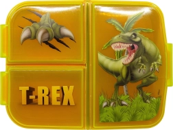 Het aantrekkelijke dinosaurusmotief met de tekst T‑REX spreekt kinderen aan en stimuleert hun zelfstandigheid bij het klaarzetten van de lunch.