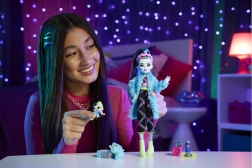 De Frankie Stein pop uit de Creepover Party editie brengt de perfecte mix van mode en fantasie. Dankzij de opvallende kleuren, blauwe haarlokken en iconische bliksemdetails zijn kinderen meteen verkocht. De set zit vol kleine accessoires die creatieve verhalen en stijlvolle verkleedmomenten stimuleren.