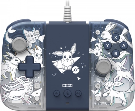 De HORI Split Pad Pro Attach Set (Eevee Evolutions) geeft je perfecte controle in elke situatie. Door hem op de Nintendo Switch te plaatsen, krijg je een comfortabele handheld met volwaardige bedieningselementen; sluit je hem aan op de adapter, dan gebruik je het apparaat als bedrade controller om op de tv te spelen. De halftransparante behuizing met Eevee en zijn evoluties zal elke fan bekoren.