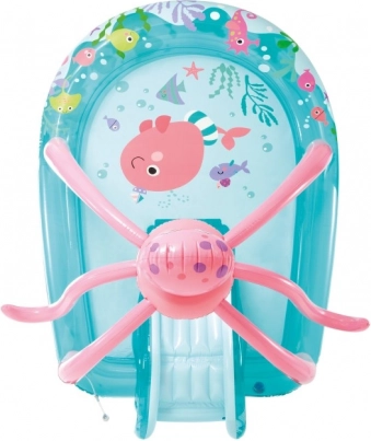 Het opblaasbare waterspeelcentrum Octopus verandert je tuin in een klein zeekoninkrijk. Dankzij de geïntegreerde sproeier die op de tuinslang wordt aangesloten, ontstaat er een fijne waternevel waar kinderen dol op zijn, en de glijbaan zorgt voor veilig glijden in het badje. De extra opblaasbare bodem verhoogt het comfort tijdens zitten en spelen.