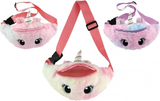 Elegante pluchen heuptas in eenhoornstijl met glinsterende hoorn. Ideale modieuze accessoire voor kinderen en volwassenen.